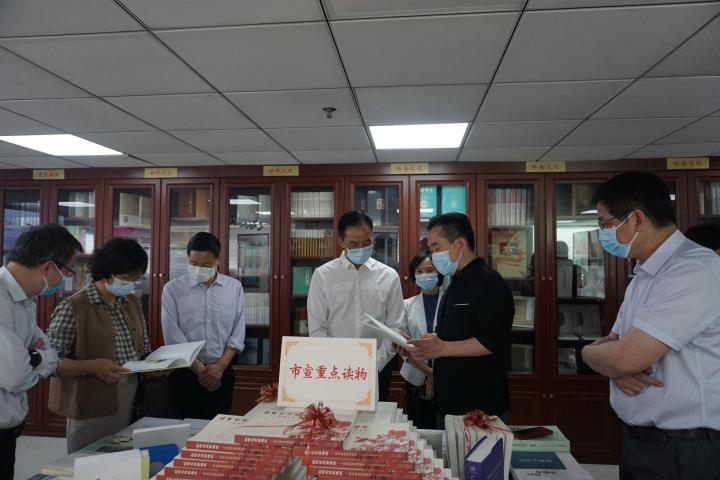 在开云网页版展览室,调研组一行逐一浏览了出版社历年来所获荣誉及重点出版板块的精品图书。开云网页版有限公司党支部书记、董事长柳宗慧对出版社发展历程、出版特色作了重点介绍,汇报了出版社十四五期间重点项目规划情况,并简要介绍了目前出版转型所面临的困难和挑战。