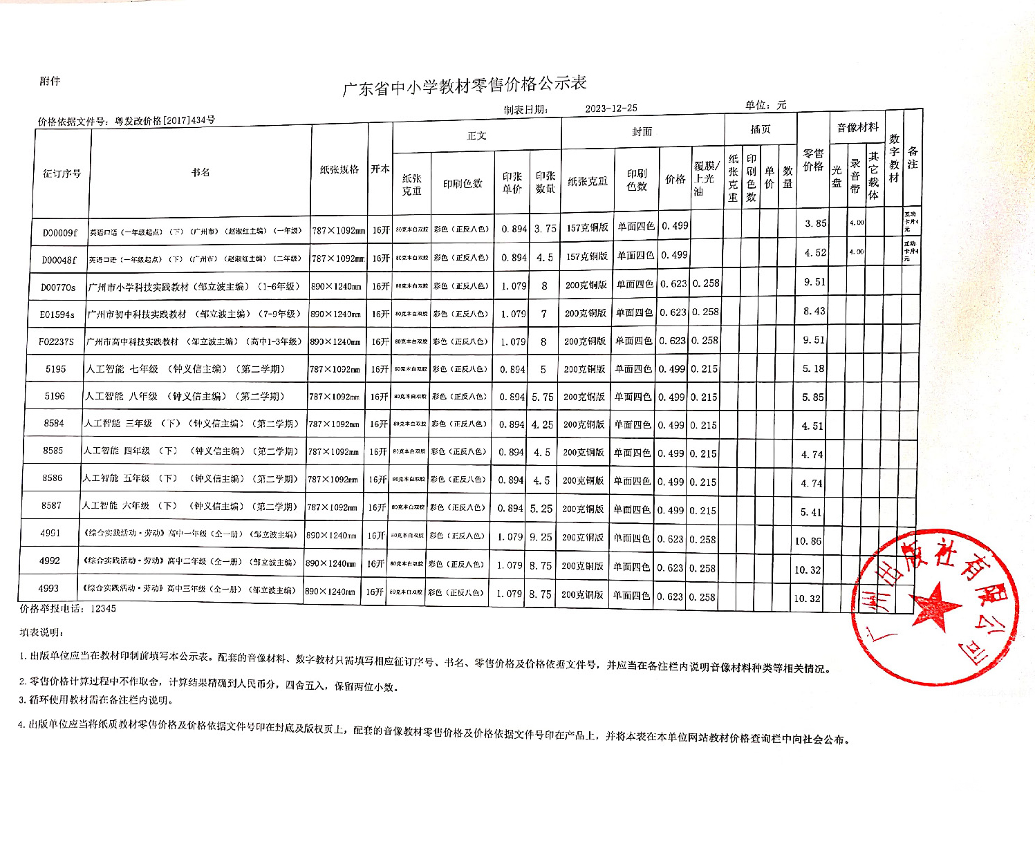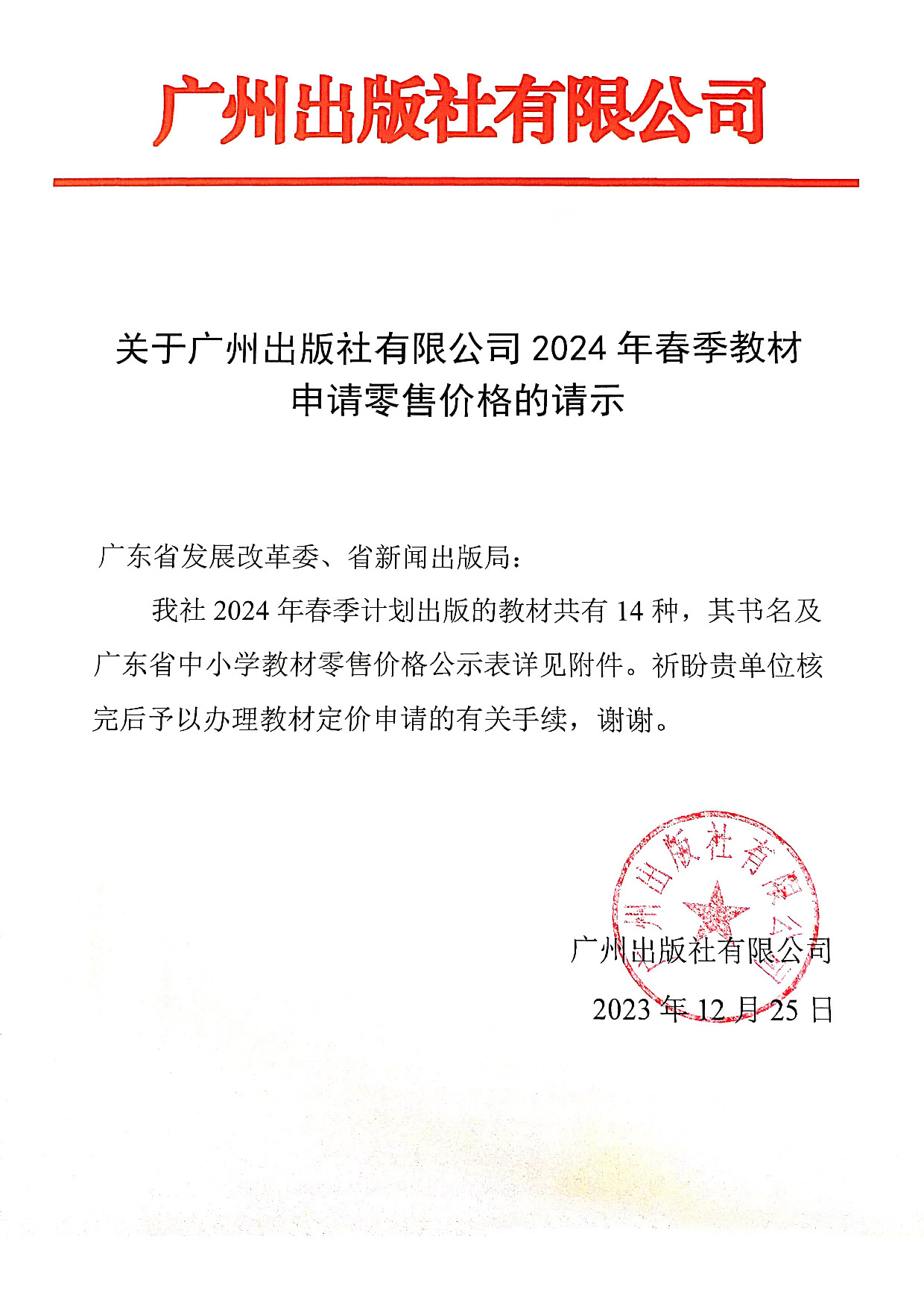 关于开云网页版有限公司2025年秋季教材申请零售价格的请示