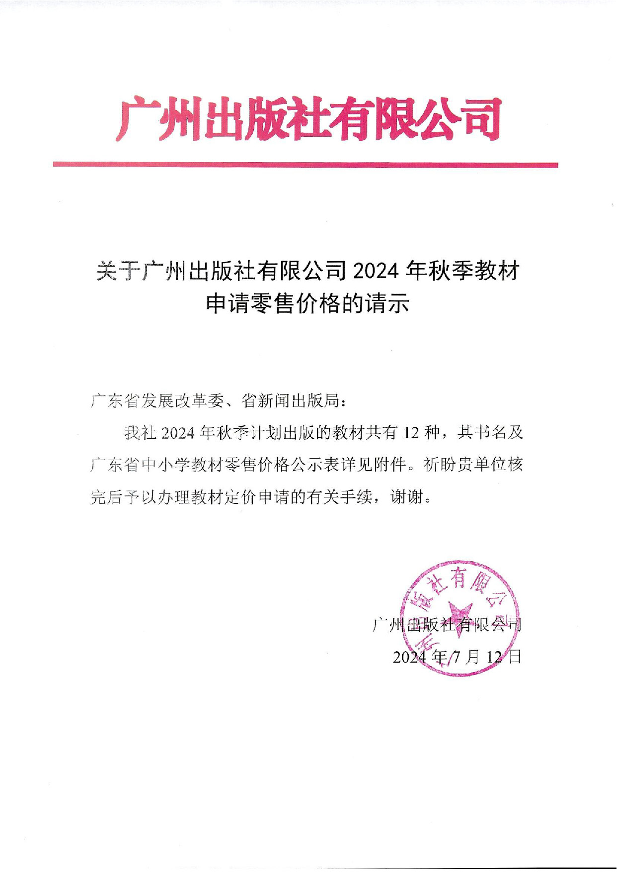 关于开云网页版有限公司2024年秋季教材申请零售价格的请示