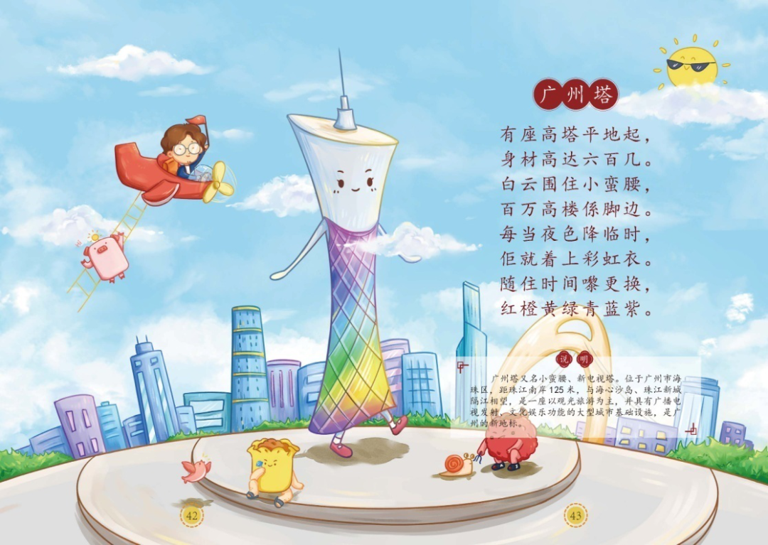 2020年,陈子典教授将最新创作的45首新广府童谣结集成书,并由趣至文化配图。这批童谣均为反映当今现实生活及广州的发展面貌之作,如描写到横跨珠江的条条大桥,有“小蛮腰”之称的广州塔等,具有十分鲜明的时代气息。